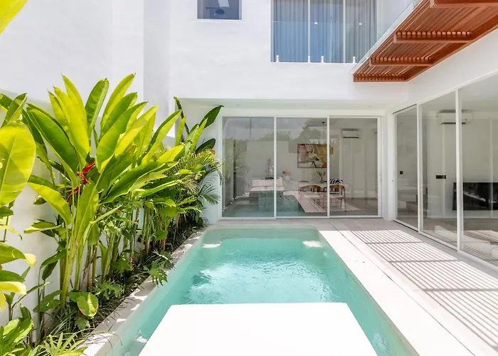 Dotato di piscina su una terrazza, White Palm Villa Canggu, di 120 m², si trova a 7 km dal Tempio di Tanah Lot. L'appartamento è ubicato a 10 minuti in macchina dalla Spiaggia di Echo.